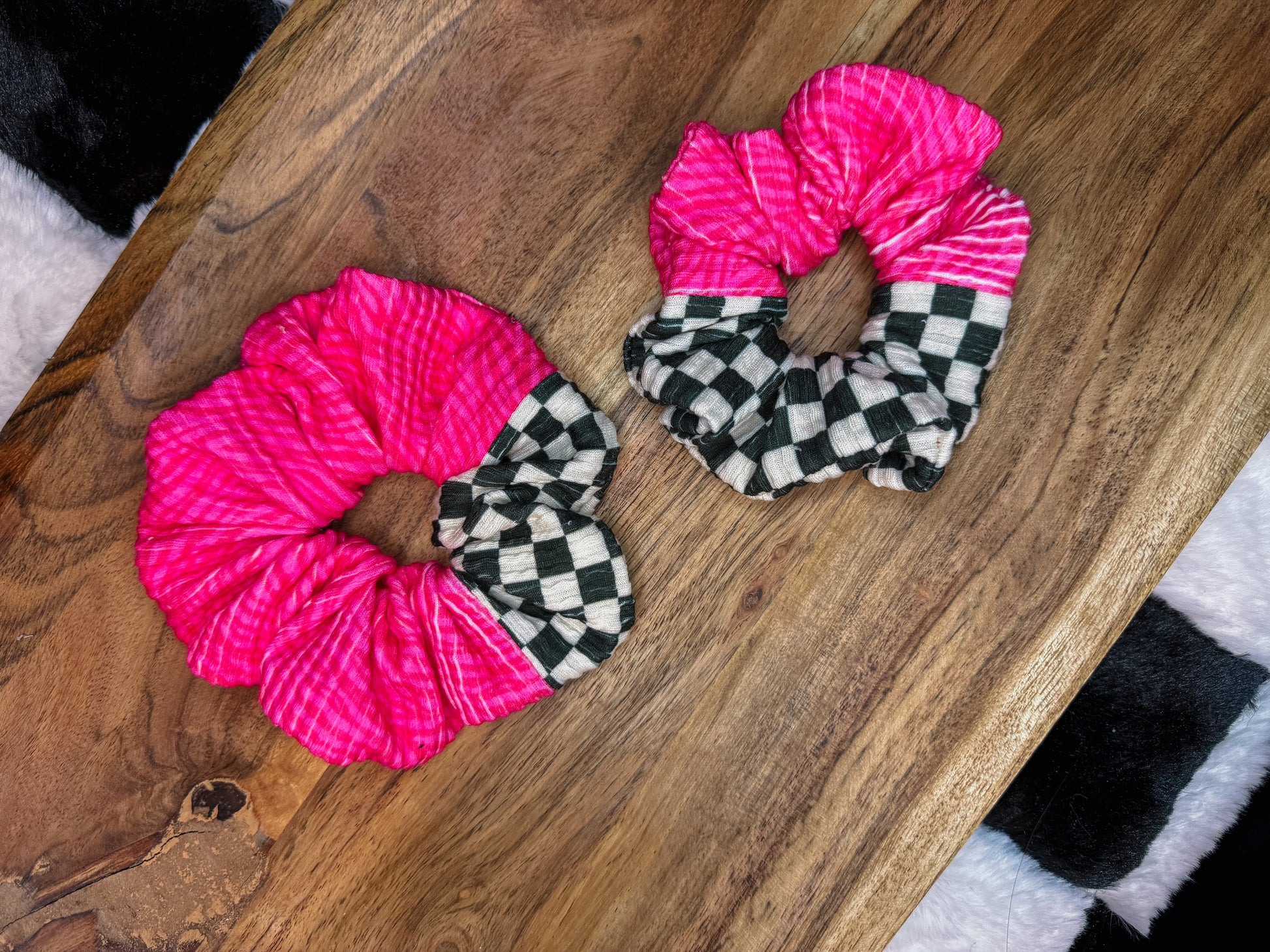 Pink Zebra / Racing Checks scrunchie